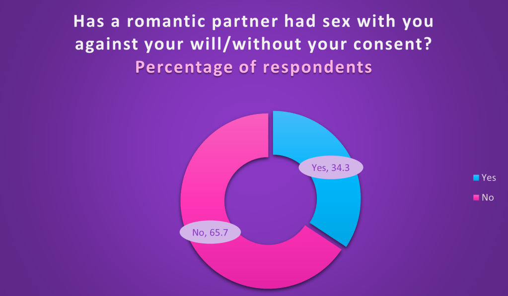 Out of those to whom this applied 20% identified as cis-het men, 60% cis-het women, 10% identified as non-binary, 10% as LGBTQIA+.